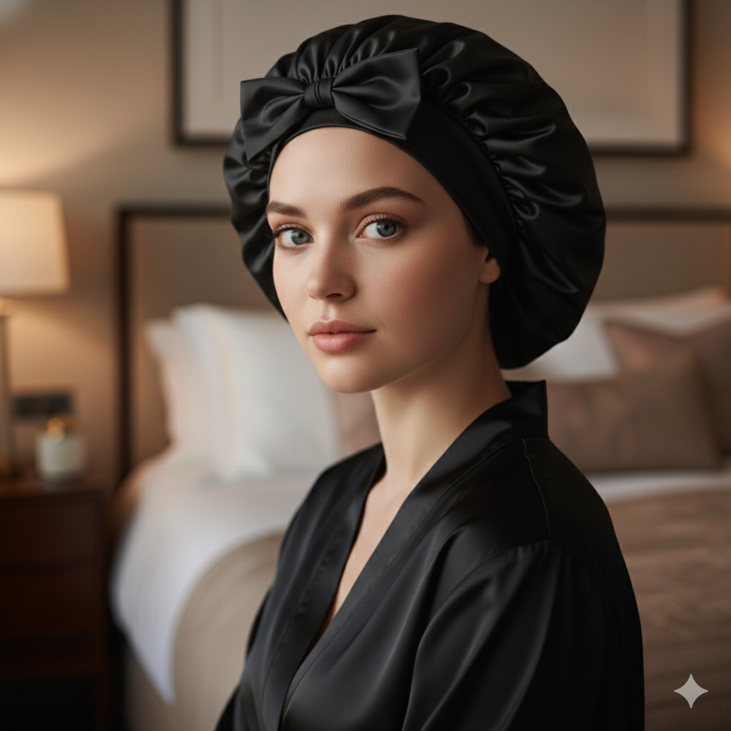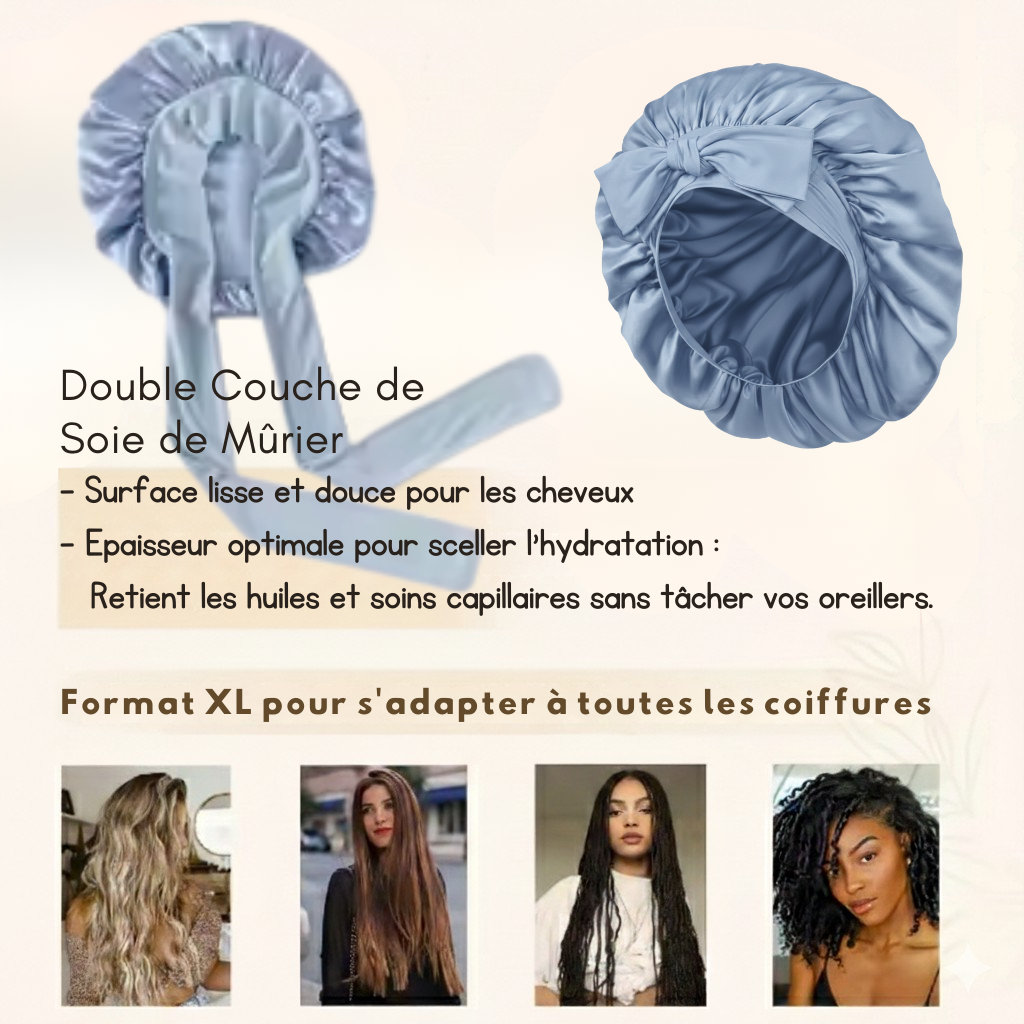 Bonnet de Nuit en Pure Soie de Mûrier — Fini les frisottis et la casse au réveil